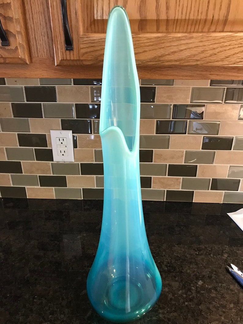 Mcm Cool Blue Aqua Huge Glass Floor Vase 42 Stretch Etsy