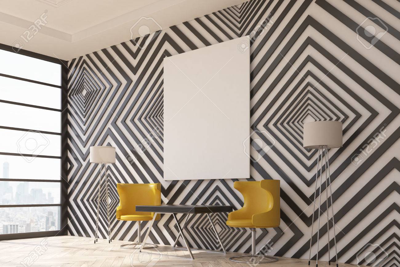 Black And White Diamond Pattern Wallpaper Modern Interior With