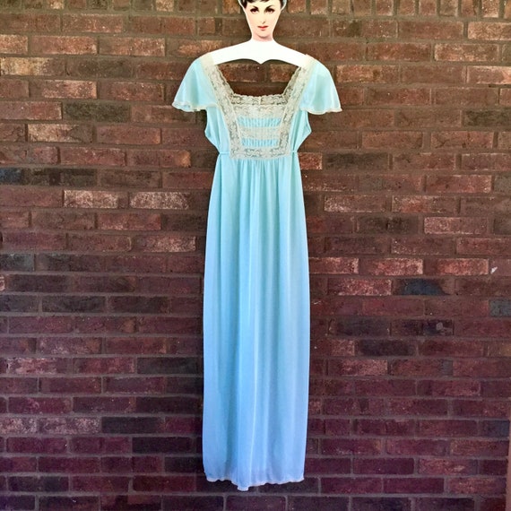 Vintage 70 39 S Blue Olga Lace Nightgown 1970 39 S Lingerie