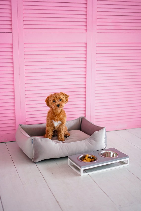 Gray Velvet Puppy Soft Bed Dog Nesting Pet Light Grey Bed Etsy
