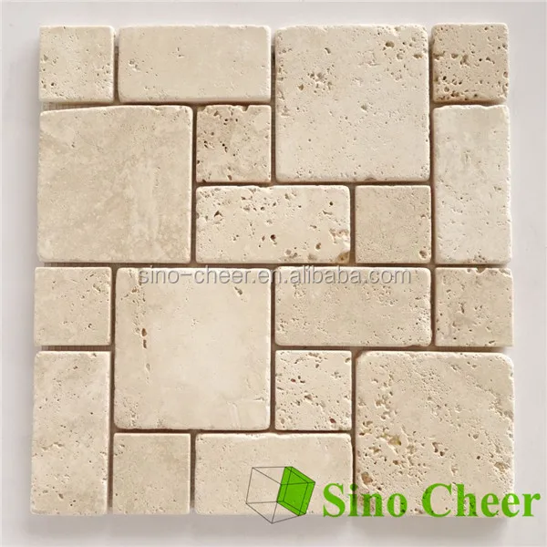Presidio Chevron 1 X 1 Limestone Mosaic Tile In Ivory Emser Tile