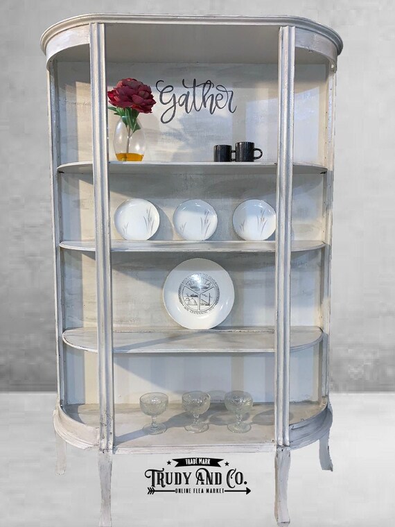 Antique Curved Front Farmhouse White Blessed Hutch Etsy