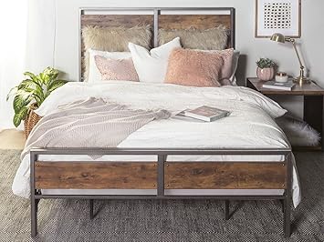 Metal Bed Frame Queen Size Platform With Vintage Headboard And