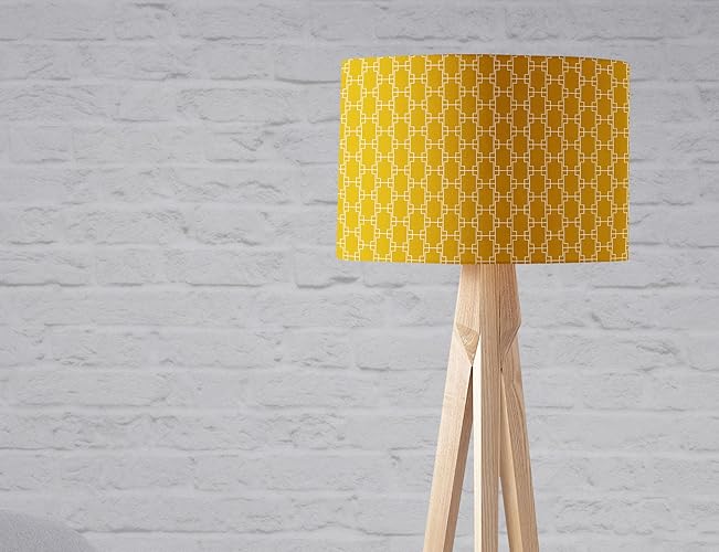 Contemporary Yellow Lamp Shade Oak 8 M Mustard Cotton Coolie Hard